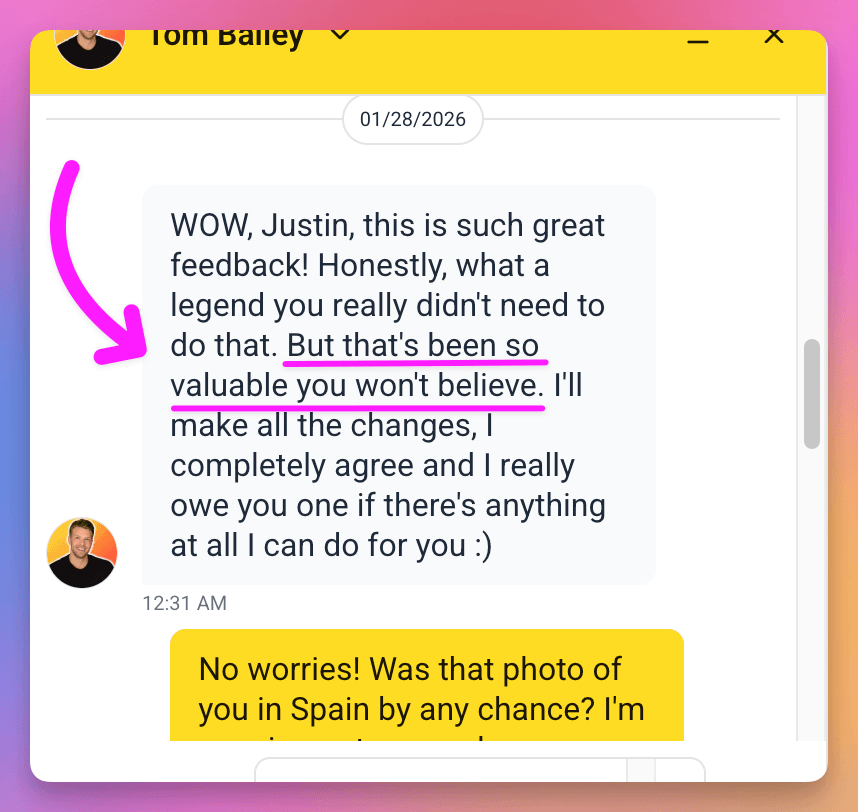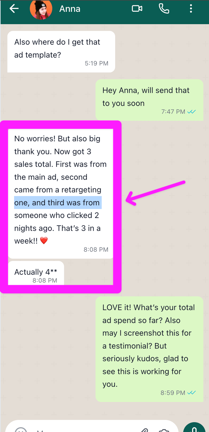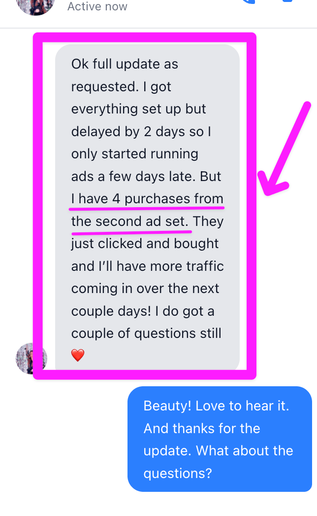 Love love loved this. Was getting inconsistent sales beforehand with Instagram and some referrals, but this got me to refine my my messaging into something that converts and I'm averaging 4 sales/day.